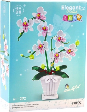 Ta komplet ponuja model elegantne orhideje, ki je navdihnjen s pravimi cvetovi. Z poudarkom na podrobnostih, od nežnih cvetnih listov do realističnih stebel in dekorativnega lončka, ustvari čudovit dodatek notranji opremi.