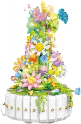 Odličen komplet, ki povezuje pisano floro z elegantnim dekorativnim elementom, ponuja podrobne strukture cvetov, listov in metuljev. Sestavljena kompozicija se spiralno dviga navzgor in se zaključi s čudovitim vrhom. Osnova sestava je okrogla, bela, z dekorativnim dizajnom.