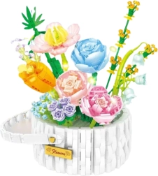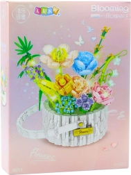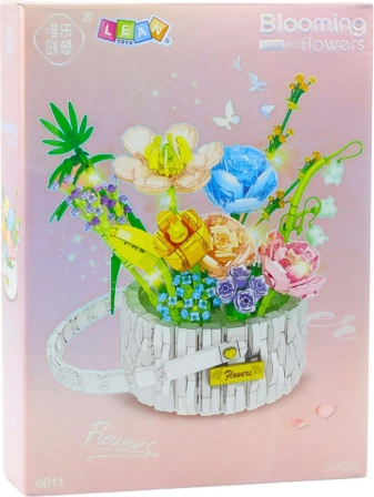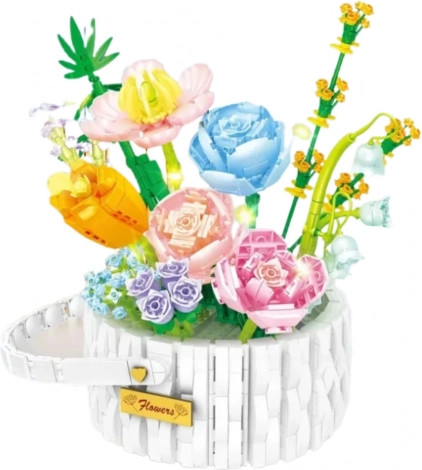 Komplet vsebuje vrtnice, tulipane, šmarnice in druge cvetlice, ki modelu dajejo realističen videz. Cvetovi so nameščeni v elegantni pleteni košari z ročajem, kar ustvarjenemu modelu doda privlačen notranji okras.