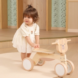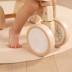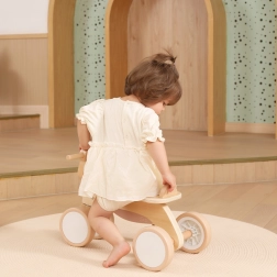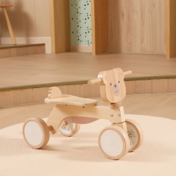 Prve korake v svet vožnje bodo otroci zlahka osvojili zahvaljujoč stabilni štirikolesni konstrukciji in udobnemu sedežu z oporo proti zdrsu. Poganjalec je izdelan iz kakovostnega lesa in ima tiha EVA kolesca, ki so prijazna do tal in primerna tudi za gladke zunanje površine.