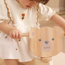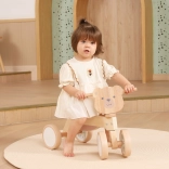 Varnost povečuje blokada krmiljenja, ki omejuje pretirano zavijanje krmila. Med igro otroci naravno razvijajo ravnotežje, koordinacijo in grobo motoriko. Prisrčen »medvedji« sprednji del in naraven dizajn se odlično podata v otroško sobo.