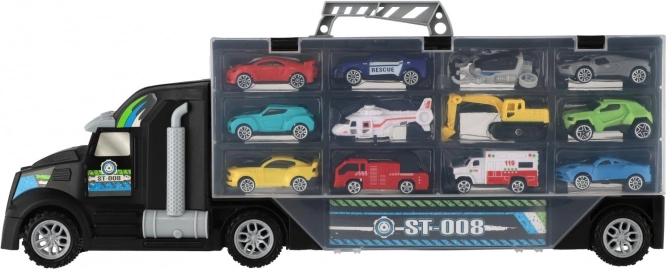 Velik transportni tovornjak s prostim tekom je idealno darilo za male navdušence nad avtomobili. Ta večnamenski tovornjak služi kot shranjevalna škatla in igralni set, ki omogoča enostaven prevoz in razstavljanje prevoznih sredstev.
