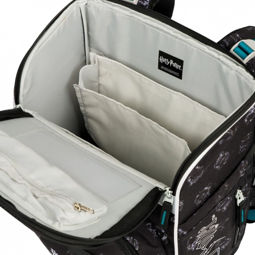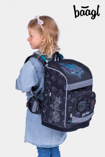Šolska torba Baagl Zippy Plus z licenčnim dizajnom HARRY POTTER – Bradavičarka združuje ergonomijo, varnost in slog. Trdna konstrukcija z ojačanim ohišjem drži obliko, stabilno dno omogoča samostojno stanje torbe, nizka teža pa olajša vsakodnevno nošenje. Drsni hrbtni sistem z nastavitvijo na treh višinah raste skupaj z otrokom in skupaj s popolnoma nastavljivimi naramnicami ter odstranljivim ledvenim pasom zagotavlja zdravo in udobno nošenje.