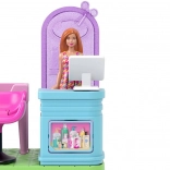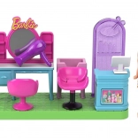 Set dopolnjujejo interaktivni elementi, kot sta nastavljiv stol in vrtljiva tablica, ki otrokom omogoča odločiti, ali je salon odprt ali zaprt. Mini punčka Barbie se upogiba v pasu, kar omogoča, da jo zlahka namestite na stol ali k recepciji. Dodatna prednost je podstavek v obliki srčka, združljiv z drugimi seti Mini BarbieLand.