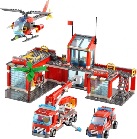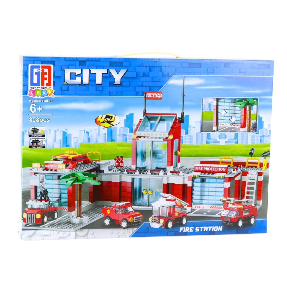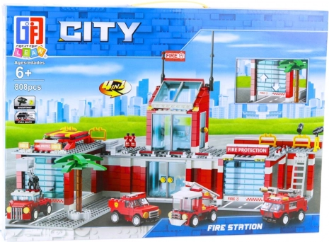Gradbeni komplet gasilska postaja z vozili, 808 kosov