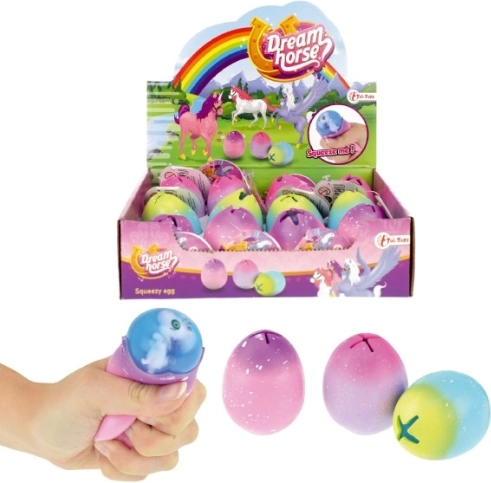 Stresno jajce/sluz z enorogom, antistresna gumijasta igrača 6 cm, 3 barve, 12 kos v škatli
