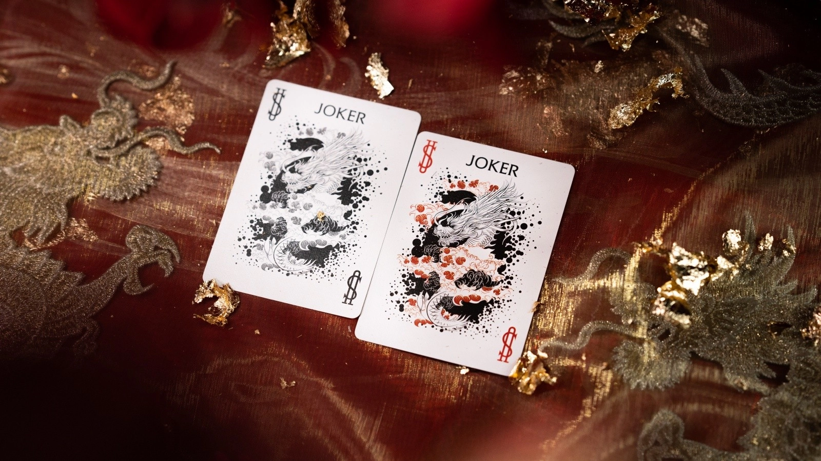 Praznujte moč in srečo v letu zmaja z igralskimi kartami Bicycle Rdeči Zmaj! Figure v slogu klasičnega kimona dodajo vaši igri edinstven sijaj, medtem ko zlata folija na škatli z zmajevim bliščem zagotovo pritegne pozornost.