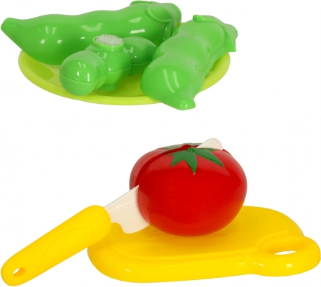 Ta bogat komplet omogoča otrokom pripravo »jedi« iz barvitega sadja in zelenjave, razdeljene na dele, ki se povezujejo z ježkom. Igra z nožki in dodatki pomaga pri pravilnem prijemu, koordinaciji oko–roka ter naravno uvaja poimenovanje živil.