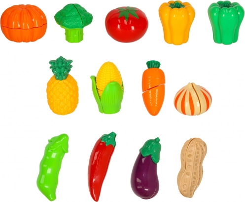 - Sadje in zelenjava na ježka (13 kosov): grah v stroku, zelena paprika, rumena paprika, čili, čebula, brokoli, koruza, paradižnik, ananas, buča, jajčevec, fižol, korenje.