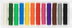 Komplet 12 barvnih ploščic v pestrem naboru odtenkov ponuja široke možnosti ustvarjanja in preprosto mešanje barv. Plastelin je primeren za domačo igro, šolsko učenje modeliranja in sprostitvene terapevtske vaje.