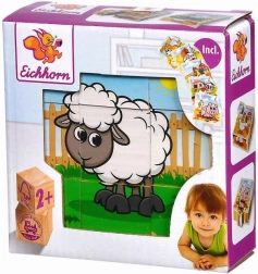 Lesene slikovne kocke EICHHORN prinašajo otrokom klasično zabavo v sodobni izvedbi. Devet trdnih kock iz kakovostnega borovega lesa tvori šest različnih motivov s kmečko tematiko, ki bodo razveselili vsakega malega ljubitelja živali.