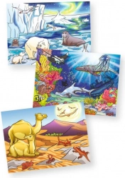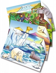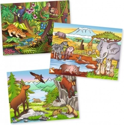 Zaradi priloženih predlog lahko mlajši otroci lažje najdejo pravilne koščke, starejši pa se izziva lotijo brez namigov. Odlična izbira za domačo igro in vrtce.