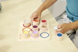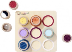 Ta Montessori tipna deska je zasnovana tako, da otroke motivira k aktivnemu raziskovanju in primerjanju različnih površin in tekstur. Devet samostojnih valjev ponuja pestro senzorično izkušnjo, ki razvija tipno zaznavanje, zbranost in koordinacijo oko–roka.