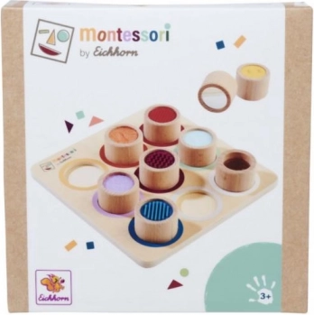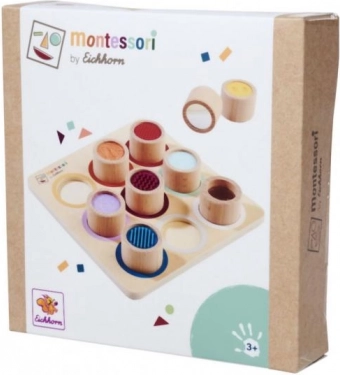 Montessori tipna deska z 9 senzoričnimi valji iz FSC bukovega lesa in vezane plošče. Spodbuja tip, zbranost in fino motoriko. Primerna od 3 let.