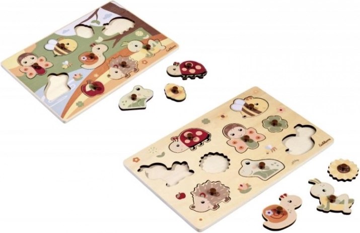 Lesene sestavljanke z 9 kosi in merami 28 × 18 cm ponujajo prijetno sestavljanje iz trpežnega materiala. Na voljo sta 2 vrsti motivov.