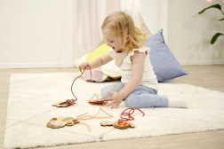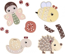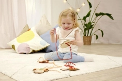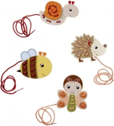 Ta lesena vezilna set z živalicami spodbuja ustvarjalnost in zbranost. Otroci lahko živalice okrasijo z vrvicami in drugimi dodatki ter ustvarijo edinstvene izdelke, ki jim bodo prinesli veliko zabave.
