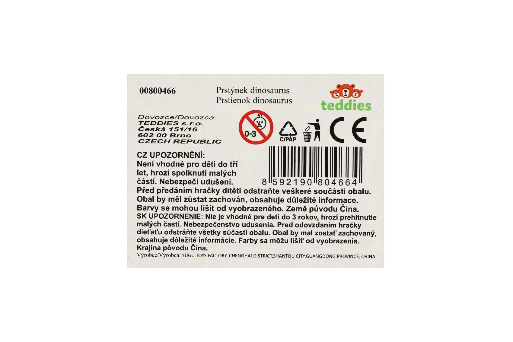 Prstan je dobavljen v blisterju, za veleprodajno pakiranje je na voljo škatla po 24 kosov (mešan izbor). Primerno od 3 let.