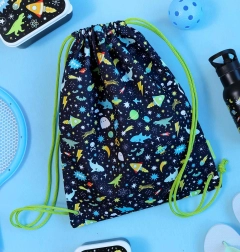 Lahka in praktična otroška športna vreča z vesoljskim motivom znamke A Little Lovely Company je idealna za v šolo, na krožke in izlete. Zahvaljujoč zatezni vrvici se enostavno odpira in zapira, v notranjosti ima žep na zadrgo za varno shranjevanje drobnarij. Izdelana je iz trpežnega 100 % poliestra, dimenzije 32 × 42 cm.