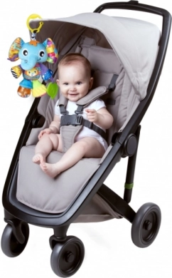 Prisrčen viseči slon Elly znamke Playgro je idealna igračka za dojenčke za voziček, avtosedež in posteljico. Ponuja številne teksture, šušteče elemente, ropotuljico in mehko grizalo za olajšanje pri izraščanju zobkov. Zahvaljujoč barvitim vzorcem in varnemu C sponu spodbuja vid, tip in sluh ter zabava otroka doma in na poti.