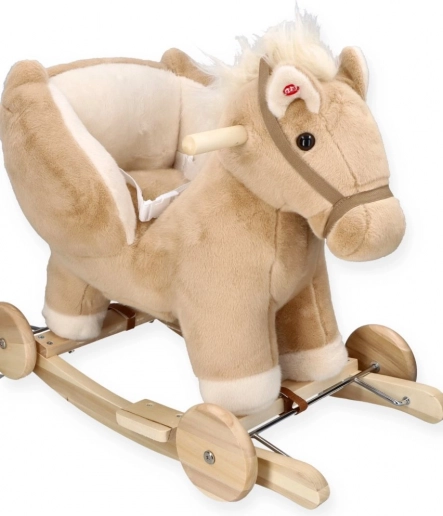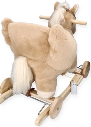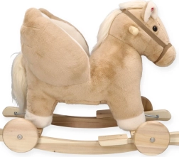 Prisrčen gugalni konj Pegaz v bež barvi združuje klasično guganje z možnostjo vožnje na kolescih. Zahvaljujoč vgrajenemu sedežu je stabilen in varen za mlajše otroke. Nastavljiva višina sedeža (pribl. 31–35 cm), kolesca za lahkotno premikanje in preprosto upravljanje ga delajo odlično izbiro za vsakodnevno igro.
