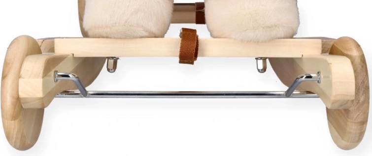 Gugalni konj Pegaz bež s sedežem združuje čar tradicionalne igrače s praktičnimi funkcijami za sodoben dom. Otrok lahko konjička uporablja na klasičnih lesenih smučkah ali pa se zaradi kolesc pelje po tleh. Sedež je v višini približno 35 cm pri uporabi kolesc in 31 cm pri guganju na smučkah, kar je idealno za predšolske otroke.