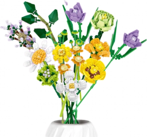 Dekorativni šopek iz sestavljanke: 925 koščkov, 12 vrst cvetov, nastavljiva stebla. Odlična dekoracija in darilo za otroke od 6 let ter odrasle.