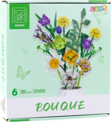 Ustvarite si svoj dekorativni šopek iz kock in okrasite dom ali pisarno z izvirno kompozicijo. Komplet s 997 kosi ponuja kar 13 vrst cvetov, podrobno oblikovane oblike in živahne barve. Trpežen material zagotavlja dolgo življenjsko dobo in možnost poljubnega aranžiranja. Odlična zabava za otroke in odrasle, ki razvija ustvarjalnost in fino motoriko.