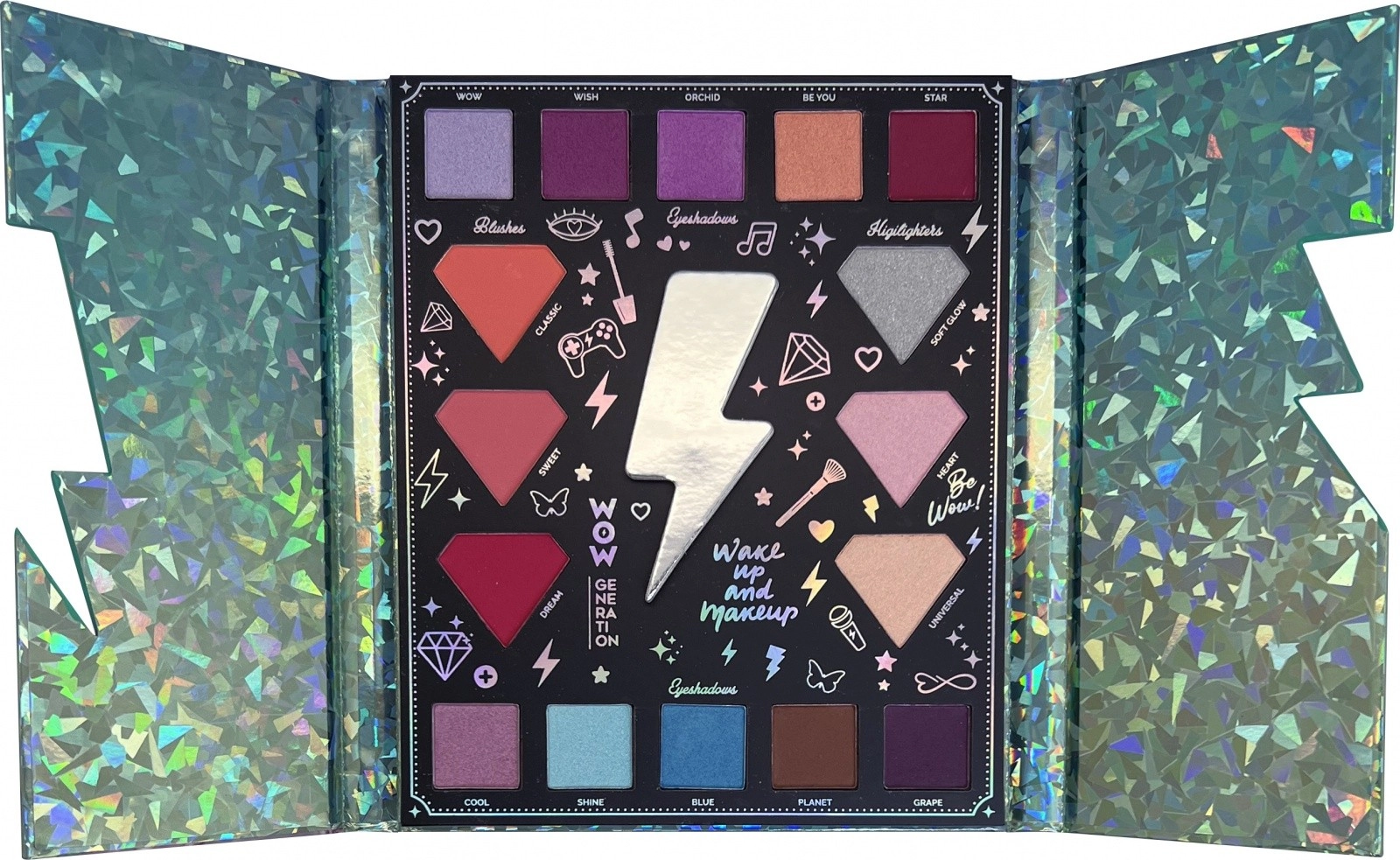 Paleta WOW Generation vam omogoča vadbo in izpopolnjevanje vseh tehnik ličenja. Zahvaljujoč izboru 16 univerzalnih barv zlahka ustvarite naravno dnevno ličenje ali bleščeče večerne videze. Lahka in praktična paleta je popolna za doma in na poti.