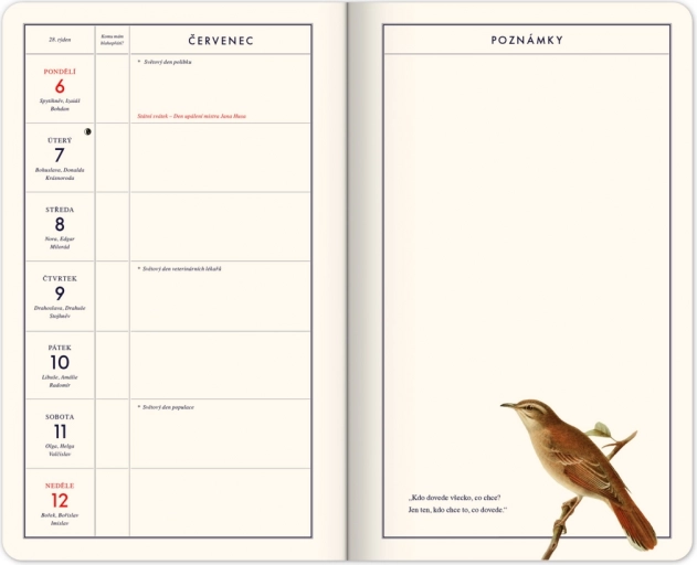 Odkrijte izviren zabavni koledar, ki ga je Kateřina Winterová pripravila že sedmič. Združuje prepoznaven slog z navdihom iz preteklosti: v njem najdete retro besedila, zgodovinske slike in botanične ilustracije, zaradi katerih je vsak teden majhna kulturna izkušnja. Slovenskemu koledariju ne manjka godovnih imen niti manj običajnih spominskih dni.