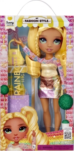 Spoznajte punčko Sunny iz kolekcije Rainbow High Fashion Style – ikono sloga, ki zablesti od glave do peta. Ima dolge, enostavno češljive rumene lase, podrobne steklene oči in nežne trepalnice. Priloženi so modni kosi oblačil, ujemajoči se čevlji in torbica. Zahvaljujoč sklepom za preprosto poziranje je idealna za styling, igro zgodb in zbiranje. Starost 3+.