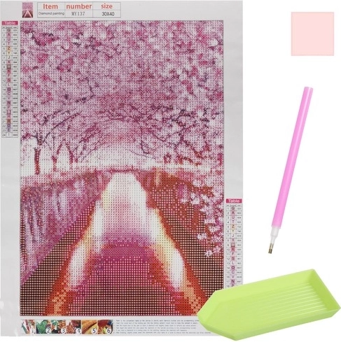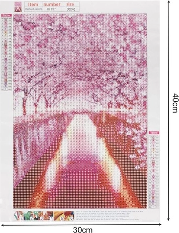 Odkrijte sproščujoč svet diamantnega slikanja in ustvarite svoje umetniško delo z motivom romantične aleje sakur. Komplet vsebuje vse potrebno in je idealen za začetnike in napredne. Zahvaljujoč kodiranemu platnu je delo preprosto in natančno, končna slika pa zažari z nežnim, bleščečim sijajem. Odličen način za počitek, razvoj kreativnosti in pridobitev izvirne notranje dekoracije.