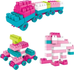 Ta pastelni komplet v odtenkih rožnate, bele, turkizne in svetlo zelene bo navdušil vsakega malega graditelja. Otroci lahko zlahka zgradijo hišice, živalice, vozila na kolescih in izvirne 3D konstrukcije. Večja velikost delov olajša prijem, varna zasnova brez ostrih robov pa zagotavlja sproščeno igro.