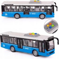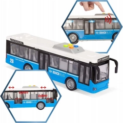 Odkrijte odlično izdelan mestni avtobus WOOPIE v merilu 1:16, ki otroke navduši z avtentičnimi detajli in funkcijami. Dovolj je pritisniti enega od štirih gumbov na strehi in avtobus zveni kot pravi: zagon motorja, vožnja, vzvratna vožnja in hupa. Notranjost je osvetljena, vrata pa se ročno odpirajo in zapirajo s pomočjo praktičnega vrtljivega gumba.