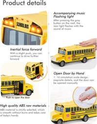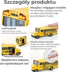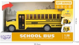 Interaktivni šolski avtobus WOOPIE v merilu 1:20 bo navdušil male ljubitelje vozil in mestnega prometa. Realistične podrobnosti, sprednje luči in zvoki vožnje pritegnejo otroke v igro, medtem ko odpirajoča se vrata spodbujajo ustvarjalne prizore in igro vlog. Zahvaljujoč vztrajnostnemu (frikcijskemu) pogonu je dovolj, da avtobus rahlo potisnete, in sam prevozi več metrov.
