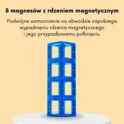 Magnetne sestavljanke WOOPIE otrokom prinašajo zabavno učenje in neskončne možnosti gradnje. Zahvaljujoč kakovostnim materialom in trdnim magnetskim spojem lahko otroci ustvarjajo raznolike in stabilne konstrukcije ter hkrati razvijajo domišljijo in spretnosti. Barvni deli in kartice s številkami naravno podpirajo učenje računanja med igro.