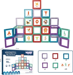 Odkrijte ustvarjalni svet magnetnih kock, ki spodbujajo učenje in zabavo. Trdni, barviti deli se zahvaljujoč močnim magnetom zlahka povezujejo in omogočajo gradnjo raznolikih konstrukcij. Priložen je set izobraževalnih kartic s črkami za igrivo usvajanje abecede. Idealno za otroke od 3 let, razvija fino motoriko, logiko in kreativnost.