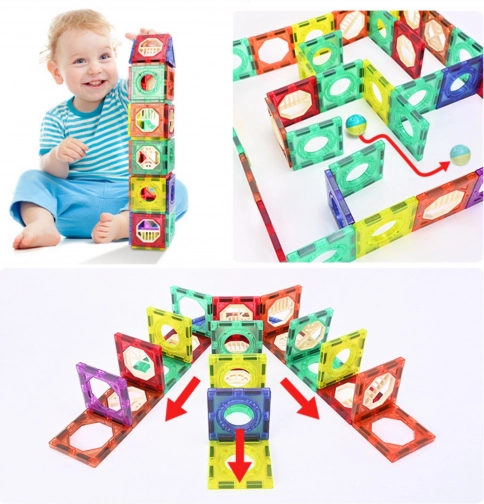 Ta izobraževalna sestavljanka ponuja nešteto konstrukcijskih možnosti – od preprostih prog do zahtevnih in stabilnih zgradb. Zahvaljujoč varnim magnetnim spojem se deli zlahka povezujejo in držijo obliko, zato bodo otroci uživali v gladkem gibanju kroglic ter eksperimentiranju s hitrostjo in smerjo.