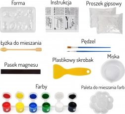 S tem zabavnim DIY kompletom bodo otroci zlahka ulili in okrasili priljubljene dinozavre, kot so stegozaver, triceratops ali tiranozaver. Postopek je preprost in intuitiven – zmešajte mavec, ga vlijte v kalup, pustite, da se strdi, nato pa začnite barvati.
