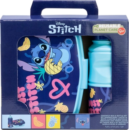 Ta jedilni set bo razveselil vse male oboževalce STITCHA. Lahka in trpežna izvedba zagotavlja udobno nošenje v nahrbtniku ter enostavno uporabo čez dan. Steklenička s prostornino 380 ml je idealna za vodo ali sok, škatla za malico pa lepo ohrani skupaj sendviče in sadje.