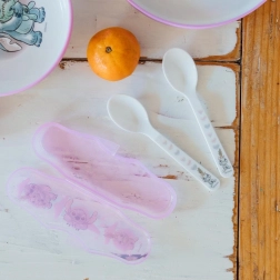 Zahvaljujoč potovalnemu etuiju bodo žličke zaščitene pred umazanijo v torbi ali nahrbtniku. Material brez BPA in skladnost s standardom EN 14372 zagotavljata varno uporabo pri vsakem obroku.