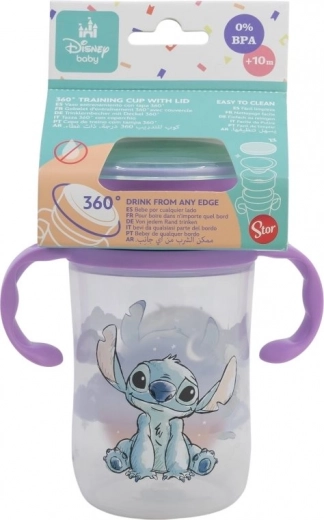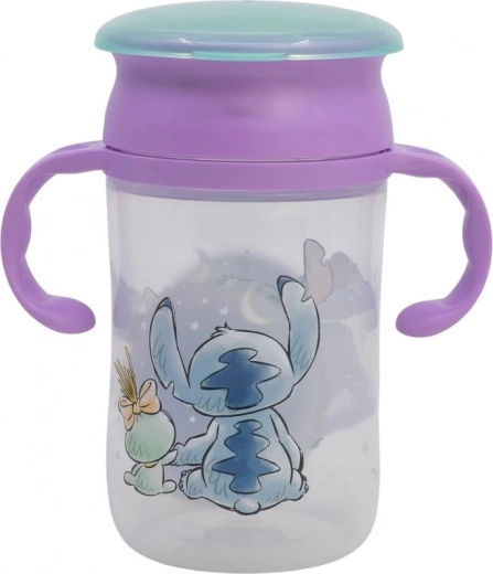 Praktična otroška vadbena skodelica s prostornino 395 ml in čarobnim motivom STITCH pomaga otrokom pri prehodu od cuceljčka do običajne skodelice. Ponuja 360° rob za pitje, udobne ročaje proti prevrnitvi, je brez BPA in zelo preprosta za čiščenje.