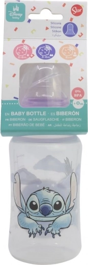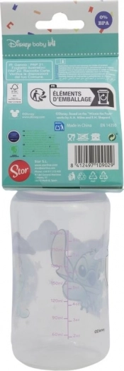 Praktična antikolikinska steklenička z motivom Lilo in Stitch za udobno hranjenje novorojenčkov. Ponuja kapaciteto 240 ml, silikonski cucl za naravno sesanje ter vgrajen protikolikinski sistem, ki zmanjšuje tveganje neugodja. Je brez BPA in izpolnjuje standard EN 14350.