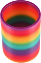 Ta barvita mavrična vzmet ponuja neskončno zabave doma in v šoli. Zahvaljujoč prožnim ovojem se gladko preliva, poskakuje in elegantno premika po stopnicah. Lahka plastična izvedba je varna za otroke in odporna na vsakodnevno uporabo.