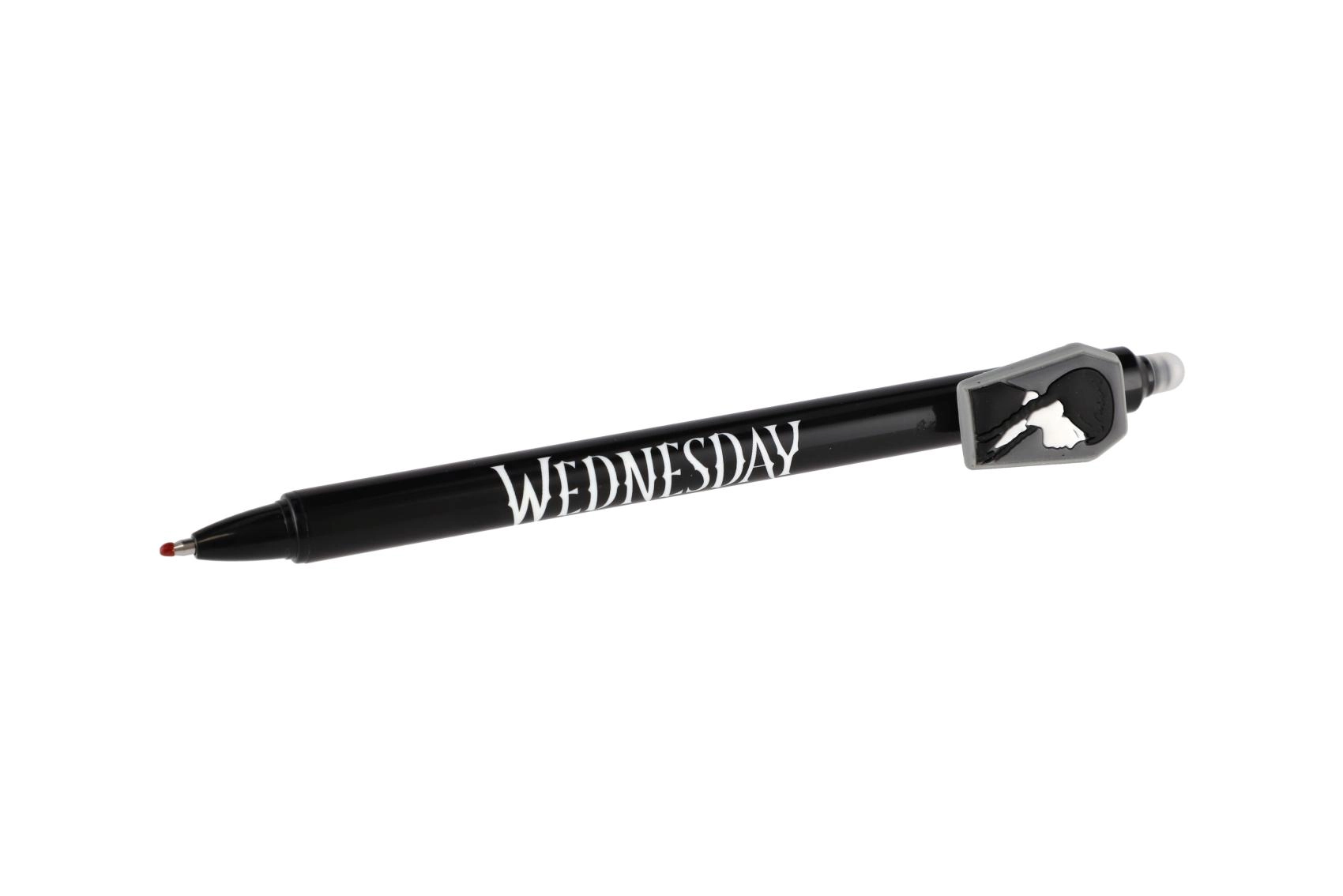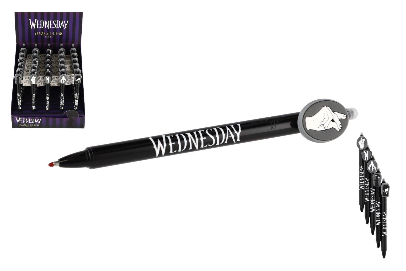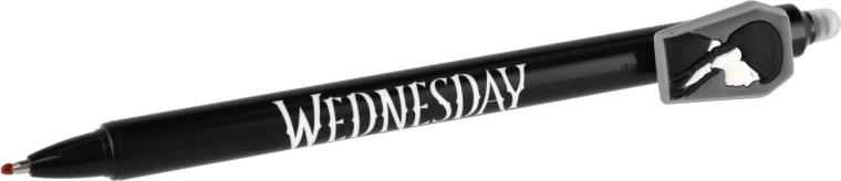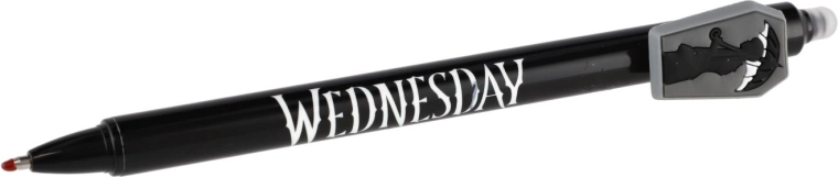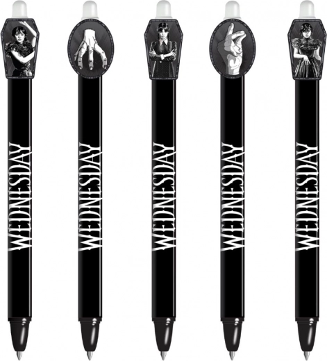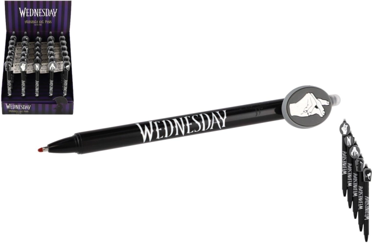 Odkrijte zabavno in praktično izbrisljivo gel pero z motivom Wednesday. Brez prečrtavanja – napake preprosto izbrišete s posebnim izbrisljivim koncem. Idealno za v šolo, za pisanje brez stresa in za vse oboževalce licence.