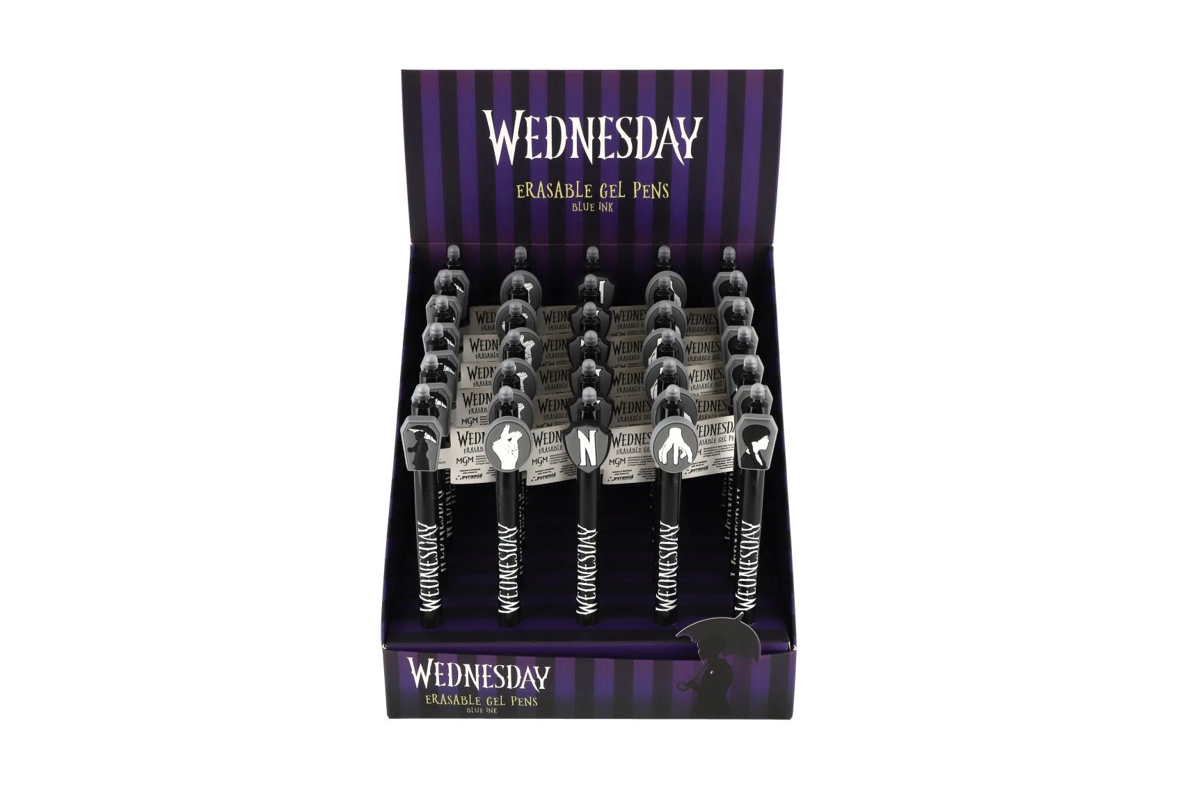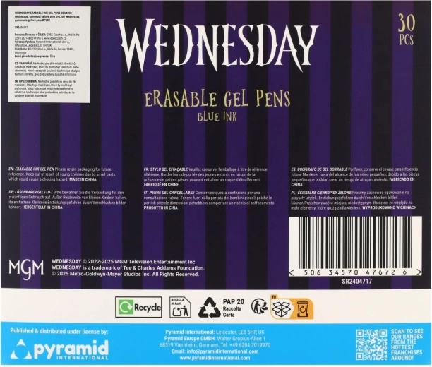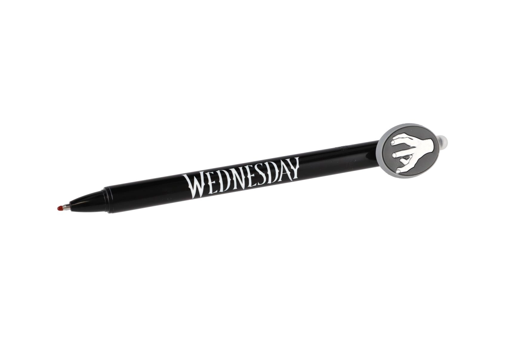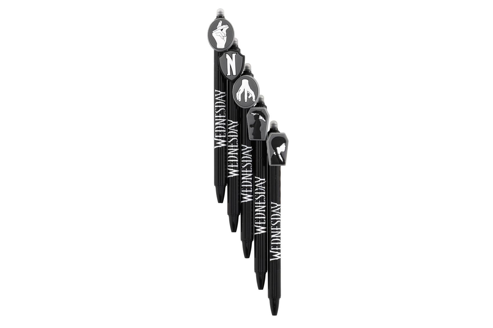 Odkrijte zabavno in praktično izbrisljivo gel pero z motivom Wednesday. Brez prečrtavanja – napake preprosto izbrišete s posebnim izbrisljivim koncem. Idealno za v šolo, za pisanje brez stresa in za vse oboževalce licence.