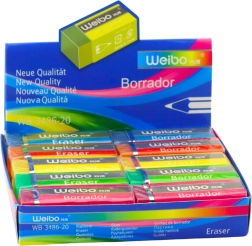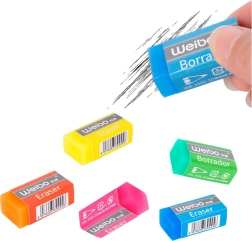 Praktična in stilska radirna guma WEIBO v živahnih barvah zanesljivo briše sledi navadnega svinčnika brez pack in brez poškodovanja papirja. Zahvaljujoč meram 6 × 2 × 1 cm se udobno drži, dolgo zdrži in zaradi izrazitih barv jo zlahka najdete v peresnici ali na mizi. Nežna sintetična sestava brez lateksa, učinkovito brisanje brez razmazovanja in naključna izbira barve jo delajo idealno izbiro za šolo in pisarno.