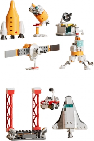 Zberite vseh 8 različnih setov in jih povežite v eno veliko konstrukcijo vesoljske postaje. Ob nakupu posameznega pakiranja prejmete manjši model (npr. anteno, ladjo, robota), ki je idealen za samostojno igro ali kot dodatek večji maketi.