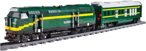 - Zeleno‑rumena lokomotiva s potniškimi vagoni