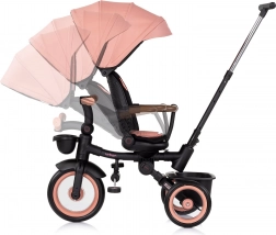 Ta večnamenski otroški tricikel 2-v-1 raste skupaj z vašim otrokom. Iz načina z vodenjem starša preprosto preidete na samostojno vožnjo. Vrtljiv sedež za 360° omogoča nastavitev položaja v smeri ali nasproti smeri vožnje, medtem ko zložljiv naslon in mehko oblazinjenje poskrbita za največje udobje.