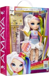 Amaya Raine iz serije Rainbow High Jr. High prinaša otrokom svet mode in glasbe v eni prikupni punčki. Z dolgimi mavričnimi lasmi, dovršenim outfitom in sklepi je pripravljena na koncerte, fotografiranje in razstavljanje na polici. Dodatki, vključno z mini klaviaturami, podpirajo igro glasbene zvezde.